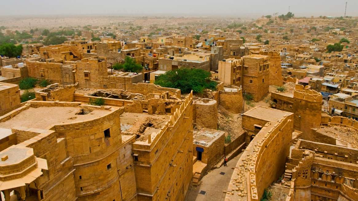 En effet, sa citadelle située en hauteur, sur une colline est visible à des kilomètres au milieu d’une plaine désertique, la citadelle est remarquable de par son imposante forteresse en grès ocre. Avec un rempart de 5 km de long, une dizaine de mètre de hauteur et une centaine de bastions, la forteresse est un véritable bijou architectural et renferme en son sein de nombreuses perles tels que de magnifiques temples jaïns et hindous et des havelis.